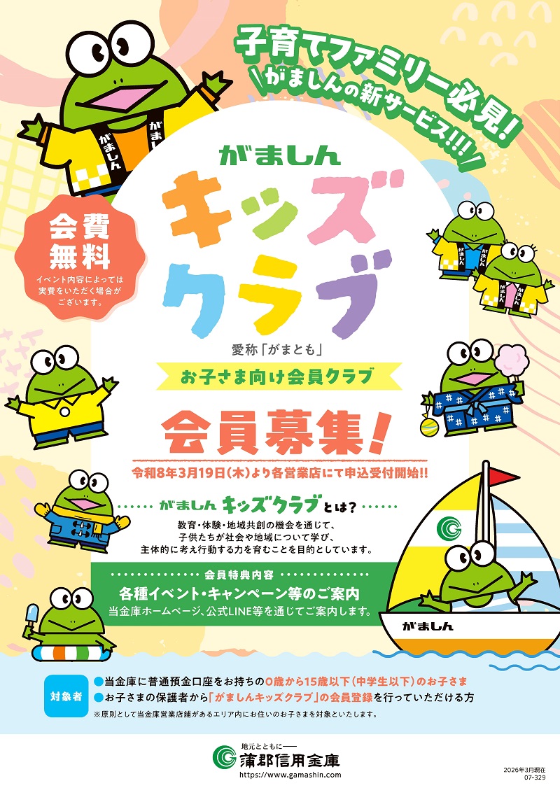 ●対 象 者 :「がましんキッズクラブ」の会員のお子様
