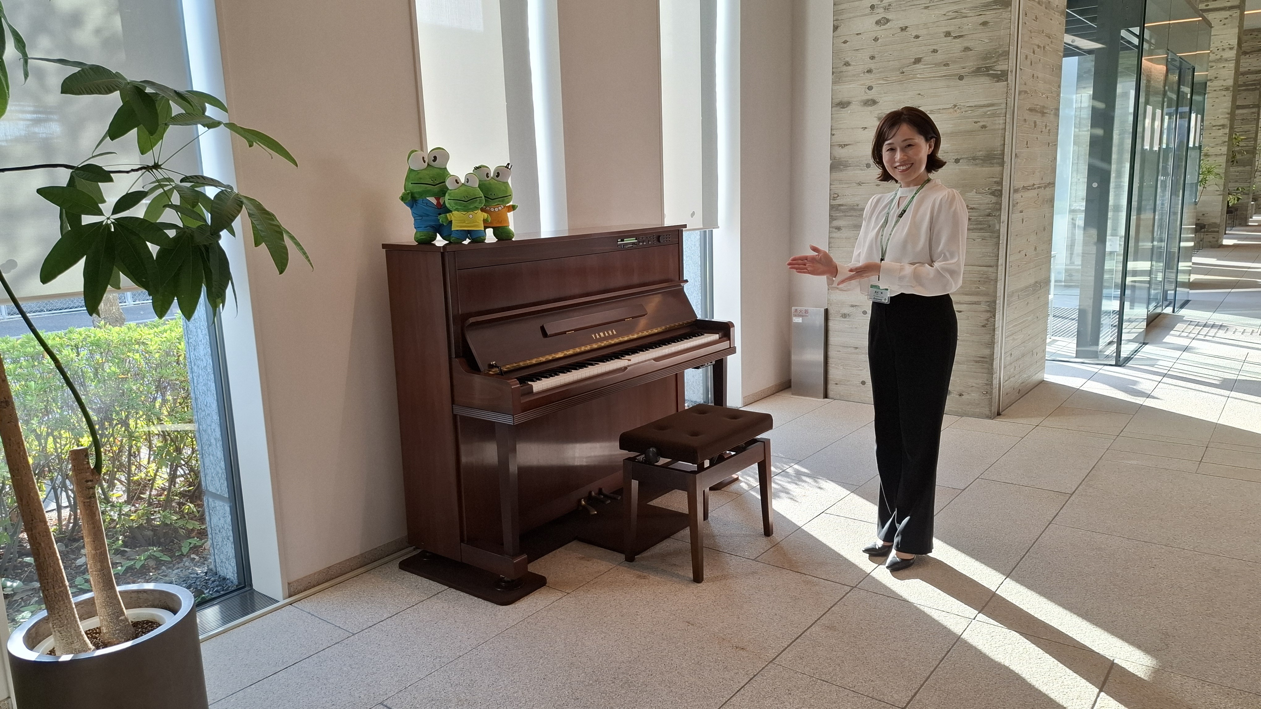 令和7年11月14日(金)本店ビル1階に自動演奏ピアノを設置いたしました。 来店されたお客さまや地域の皆さまに、音楽による癒しとやすらぎを提供したいとの思いから設置いたしました。時間帯に応じてクラシックの曲などを自動演奏させ、ロビー空間に柔らかな音色を添えます。ロビーに響くピアノの音色を、どうぞお楽しみください。