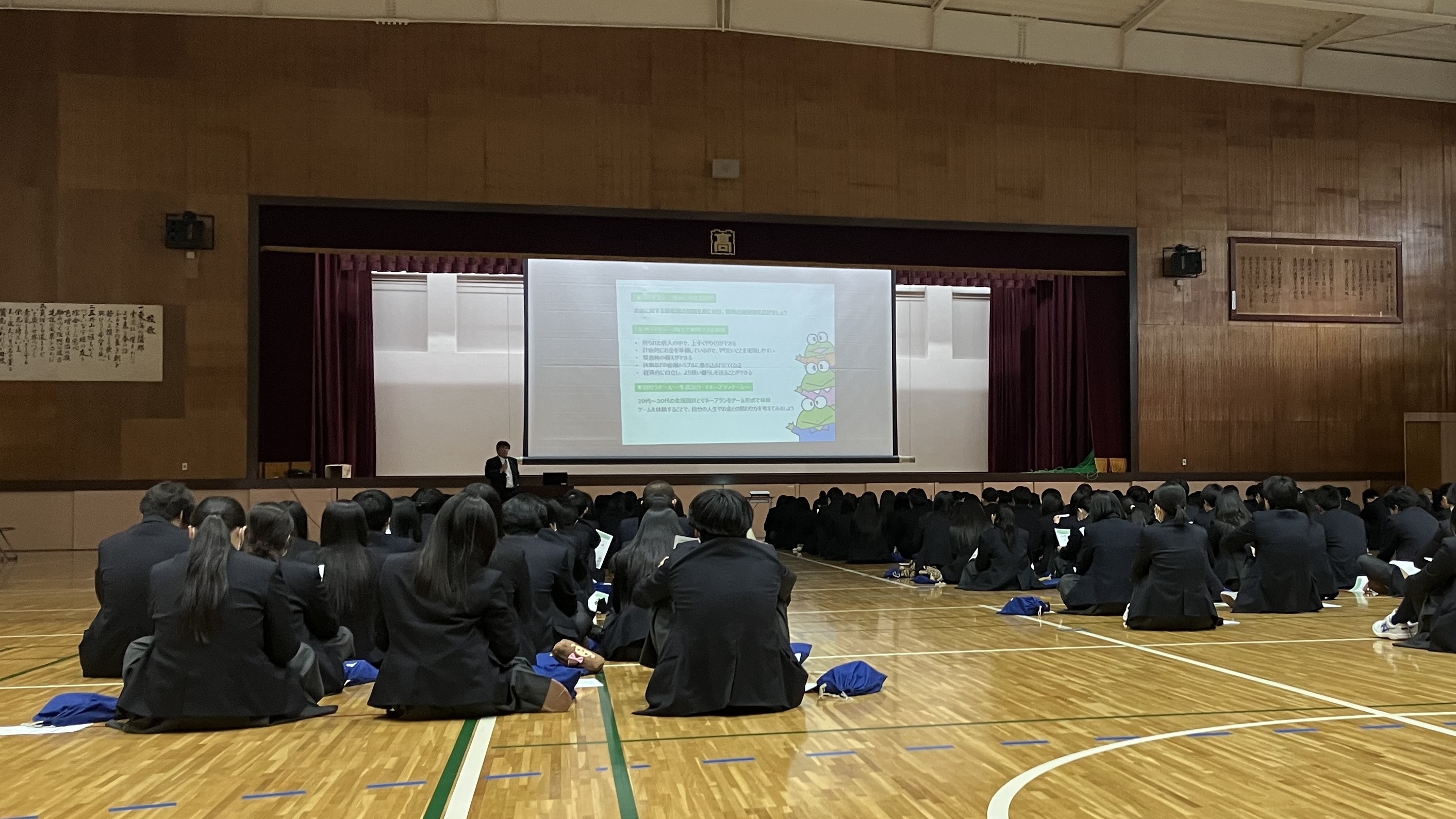 蒲郡信用金庫は、令和8年2月9日(月)に愛知県立蒲郡高等学校(以下「蒲郡高校」)の2年生約230名を対象とした「金融リテラシー」授業を実施いたしました。