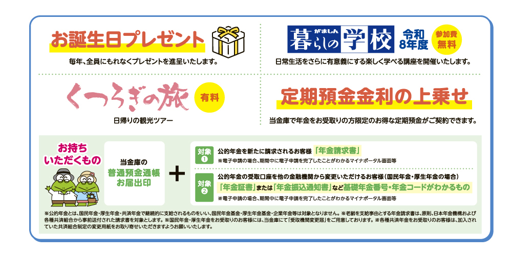 令和8年4月1日~令和9年3月31日までに当金庫へ新たに年金指定される方